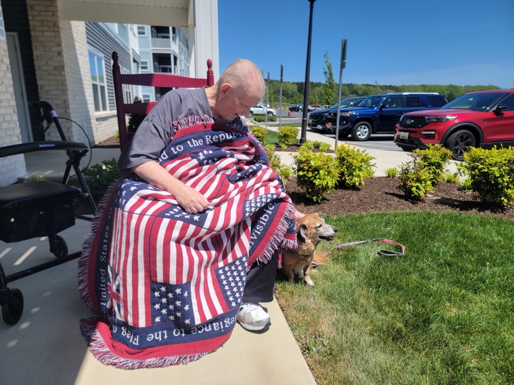 Gypsy had snuck out of the room I’m sleeping in to check on Dad, but her tail was wagging and she was knocking the blinds on the sliding door around, which woke me up.